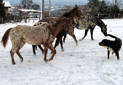 carrière et d'un rond de longe. Après le débourrage chez un professionnel de l'équitation western, les bois des monts du lyonnais nous permettent de parfaire l'éducation en extérieur. ![]() ![]() ![]() ![]() ![]() ![]() ![]() ![]() Notre souhait, vous proposer des chevaux que vous monterez en toute confiance et sécurité. ![]() ![]() ![]() ![]() ![]() ![]() L'appaloosa est un cheval robuste qui se plait à vivre en extérieur toute l'année.